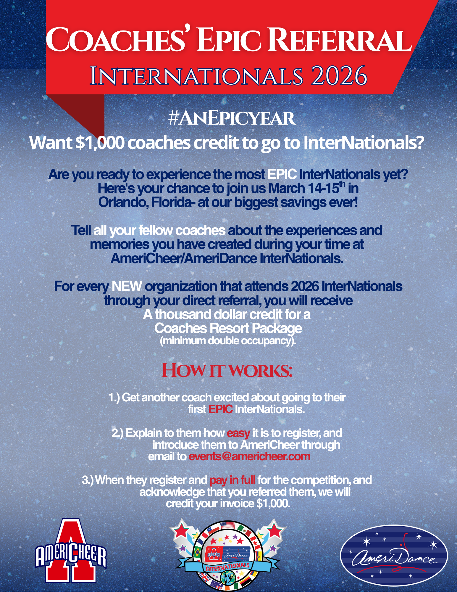 For over 30 incredible years, AmeriCheer / AmeriDance InterNationals has been the destination where unforgettable memories are made—bringing together cheerleaders and dancers from around the globe! But this year? We’re taking it to a whole new level.
